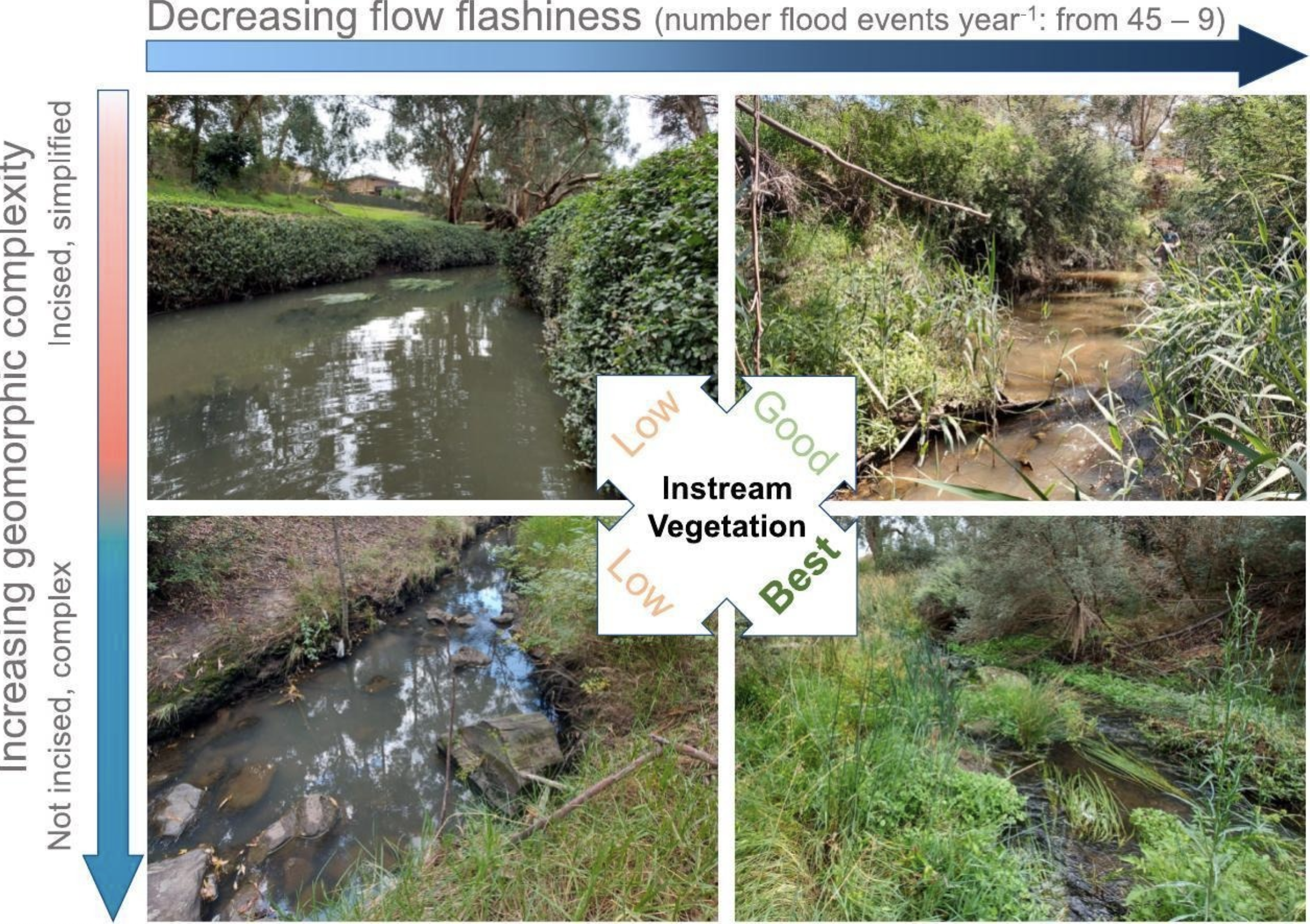 PhD student Scott McKendrick recently published this great article looking at the major drivers of instream vegetation communities across the Melbourne Water region. We showed that catchment-scale hydrology limits the benefits of geomorphic complexity for instream vegetation communities. This is just the first of several publications coming out of Scotts PhD…stay tuned for more!